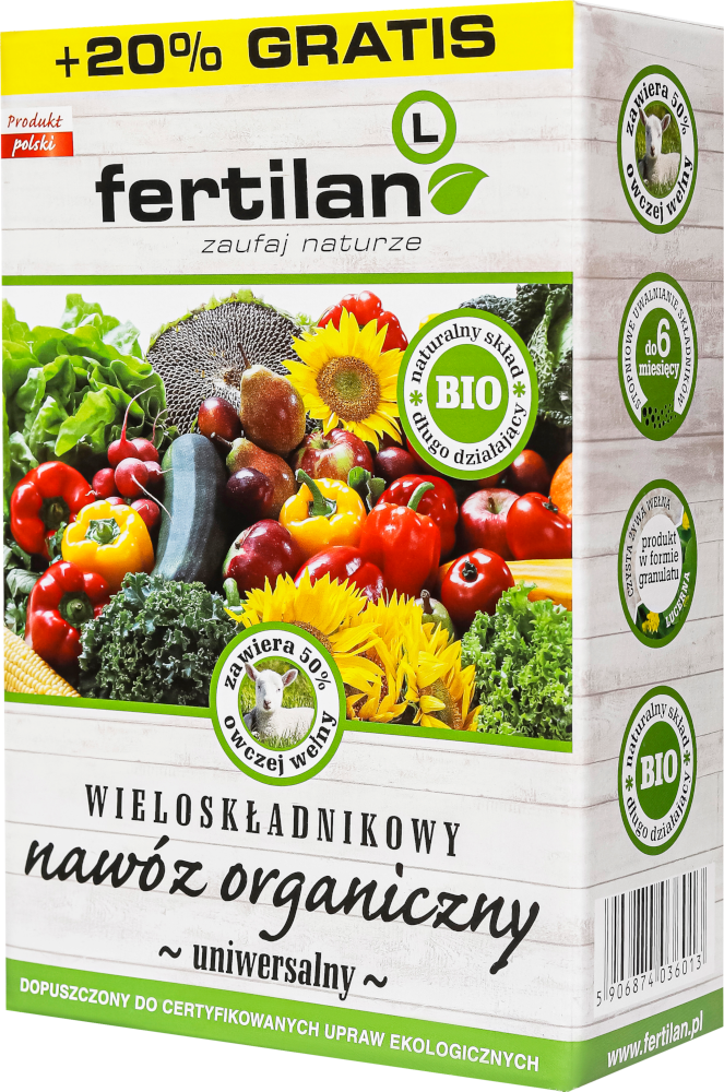 Organické hnojivo FERTILAN L je inovativní a ekologické řešení, které podporuje zdravý růst rostlin a chrání životní prostředí. Je vyrobeno z biomasy drobnosemenných luštěnin zakomponovaných do frakcionované a mleté přírodní ovčí vlny.