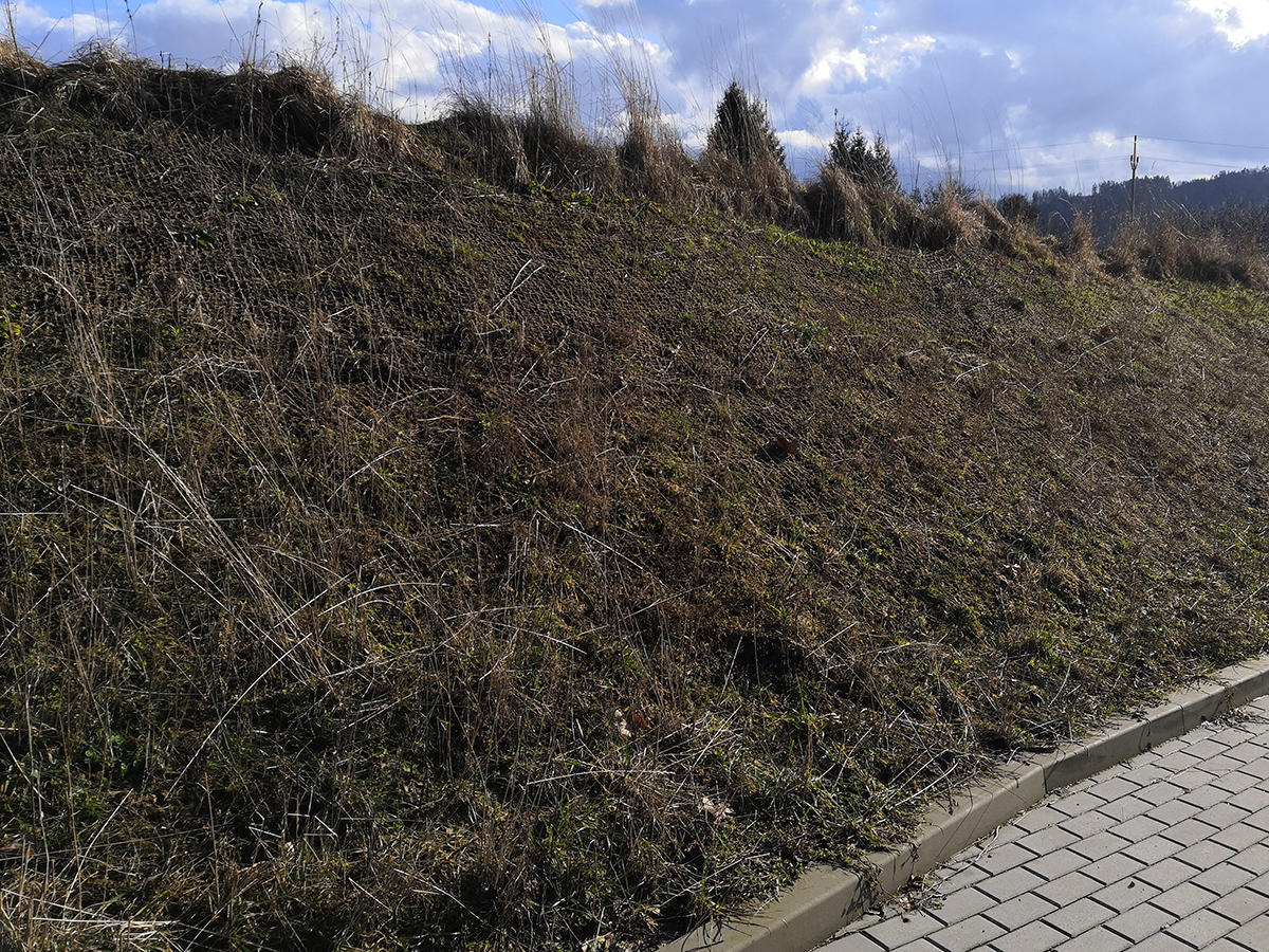 Síť pokládáme přímo na upravený břeh. Aby tkanina lépe plnila svou funkci, doporučujeme jí zafixovat s přesahem přes horní a dolní okraj svahu v délce okolo 0,8-1m. Postupně ji upevníme dostatečným množstvím kolíků s ohledem na sklon terénu a povaze půdy (většinou 1x1m). Síť nevystavujeme velkému napětí v tahu, vlákna by měla zůstat volná.