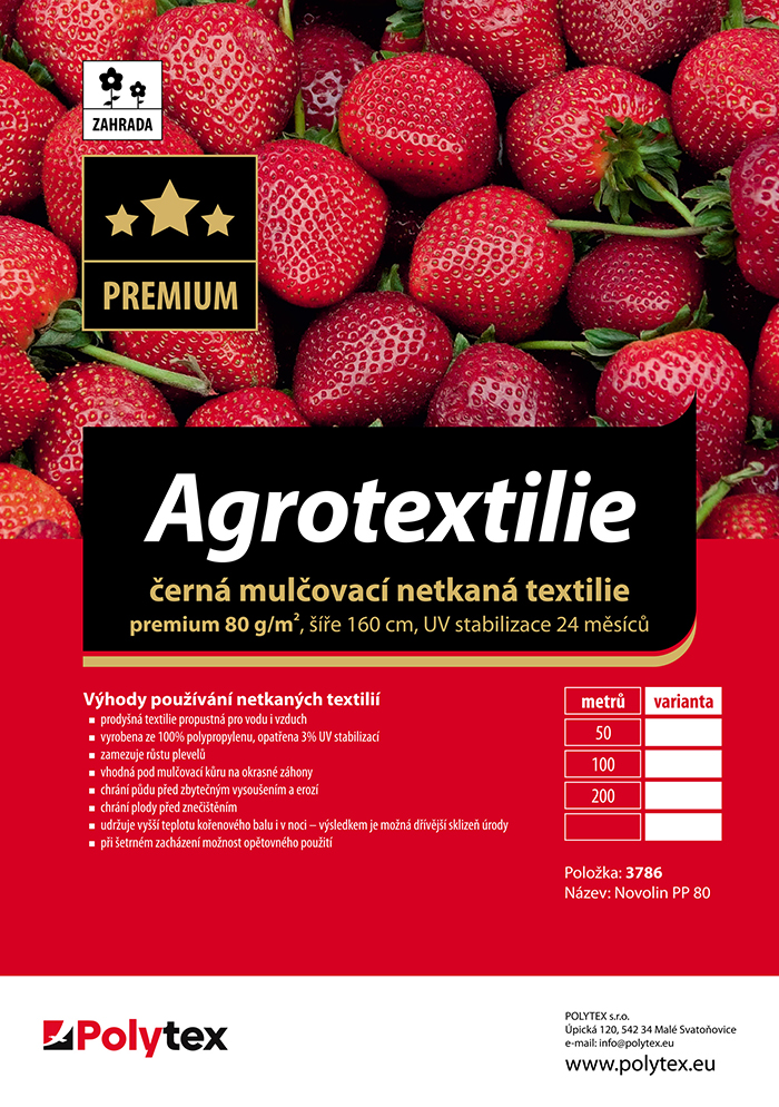 Tím že nepropouští sluneční svit na povrch půdy, zamezuje růstu plevele, čímž šetří vaši práci s následným pleváním. Černá barva udržuje vyšší teplotu kořenového balu i v noci – výsledkem je pak dřívější sklizeň úrody. Chrání plody před znečištěním od zeminy a tím oddaluje hnilobný proces. Využití najde i při realizaci zahrad, terénních a krajinných úpravách, kde chrání půdu před zbytečným vysoušením a erozí.