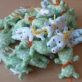 Nadýchaný jemný materiál. Dá se snadno od sebe oddělit, tudíž se s ním dobře vycpávají i menší části výrobku. Díky vláknům docílíte dokonalého vyplnění celého objektu. Při dobrém napěchování bude výrobek pevný a stabilní.