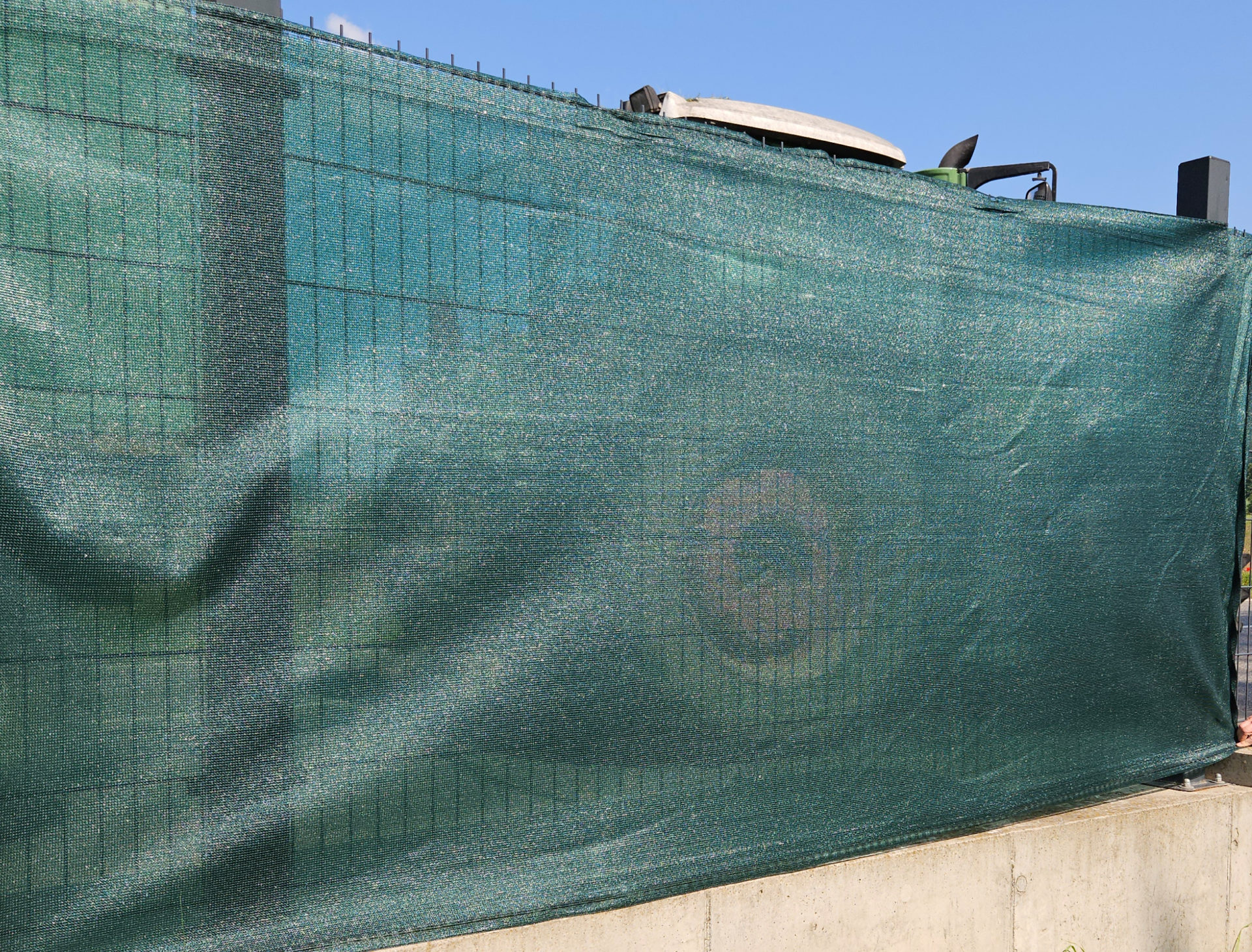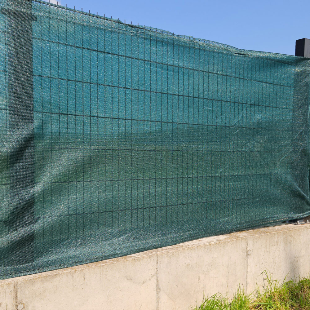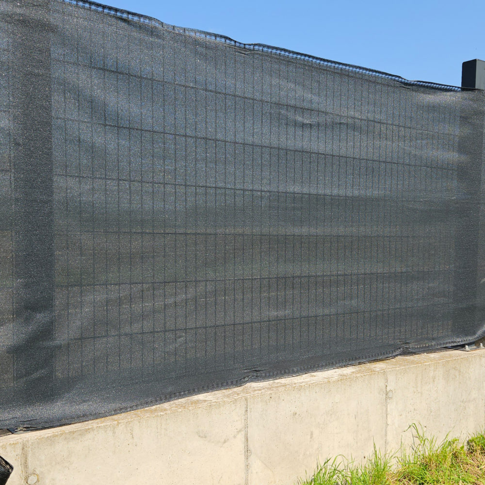 V oblastech s častým výskytem velké rychlosti a síle větru, doporučujeme připevnit stínící tkaninu k plotu pouze za vrchní část a spodní nechat volnou, aby mohla vlát ve větru. Jinak by mohlo dojít k vyvrácení nosných sloupků.