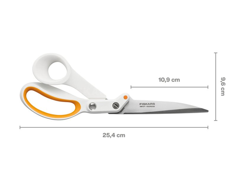 Tyto nůžky jsou konstruovány pro střihání silných tkanin, které nelze jinými nůžkami ustřihnout. Technologie Amplify™ snímá odpor materiálu a automaticky přitlačuje čepele k sobě, tím se snadněji stříhají silnější materiály, aniž by se čepele zasekly nebo tkanina sklouzávala. Hravě si poradí i s více vrstvami textilních materiálů. Výsledkem je čistý řez bez sežvýkané látky.