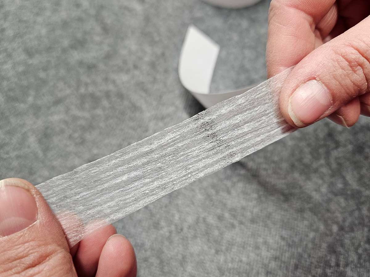 Teď můžeme sloupnout nosný papír ze Stretch pásky.