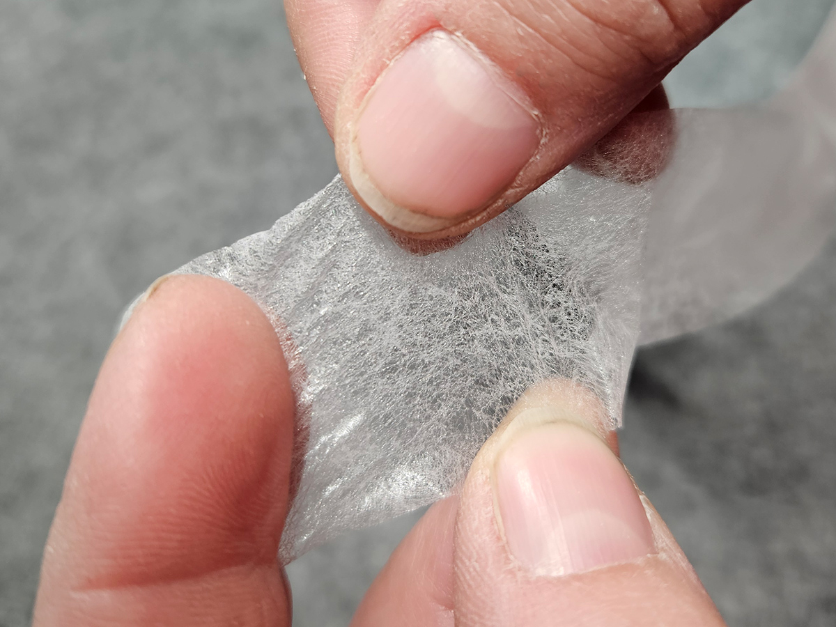 Pro lepší manipulaci je pavučinka na nosném papíře, přes který ji lze nažehlovat.